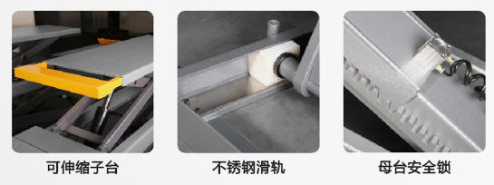 剪式舉升機(jī)分為大剪(子母式),小剪(單剪)舉升機(jī),超薄系列舉升機(jī),