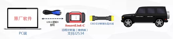 SmartLink C遠程診斷盒(維修端)還可搭配已安裝有原廠診斷軟件的電腦使用,此時它可單獨作為本地J2534工具使用,進行車輛ECU刷寫。
